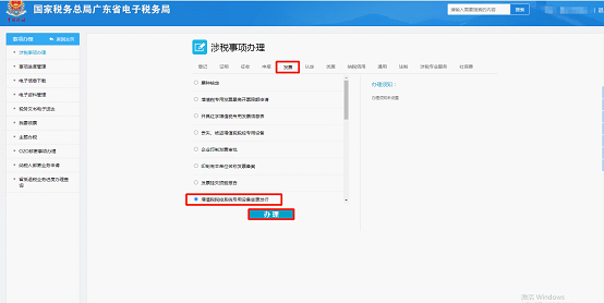 2.点击【发票】--【增值税税控系统专用设备变更发行】,然后点击【办理】