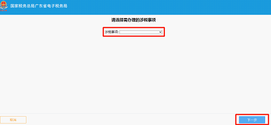 4.选择【涉税事项】-点击【下一步】