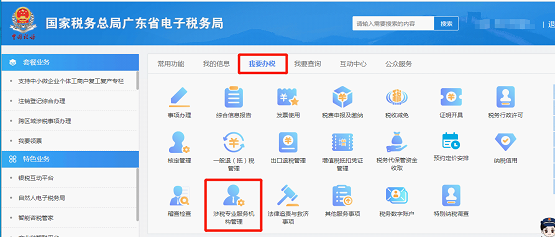2.点击【我要办税】点击【涉税专业服务机构管理】