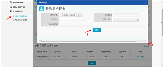 5.点击【涉税服务人员】-【涉税服务人员信息采集】,并按要求填写相关信息后,点击【确认】即可,