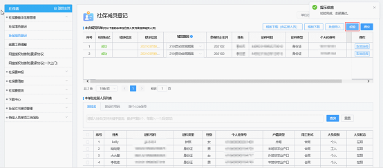 【提交】:校验通过后,可提交【本次减员名单】下的所有待减员人员;