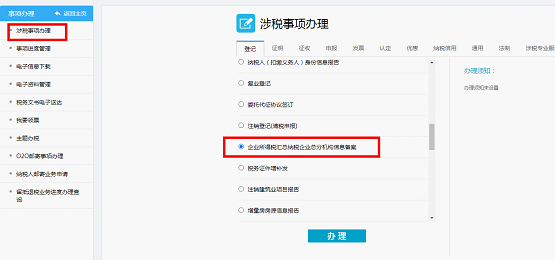 2.点击【涉税事项办理】,选择企业所得税汇总纳税信息报告