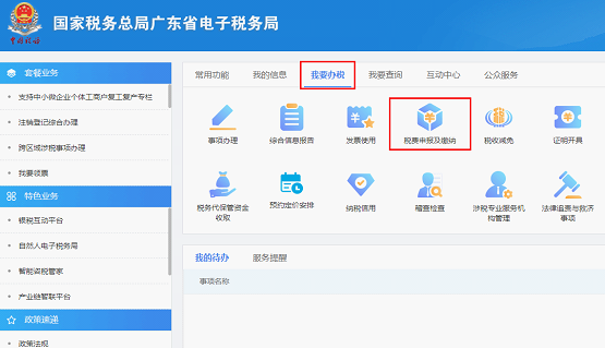 1.登录广东电子税务局,点击【我要办税】-【税费申报及缴纳】