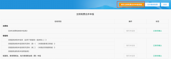10.至此,所有的主附税费申报表状态均已为“已保存确认”,点击“提交主附税费合并申报信息”