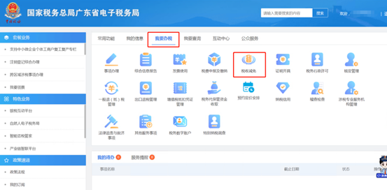 1.登陆电子税务局,点击【我要办税】--【税收减免】
