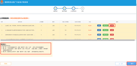 6.按照操作说明选择相应的文件【上传】后,点击【提交】即可完成资料采集