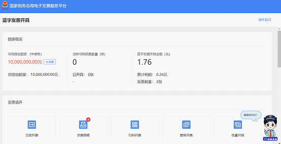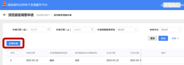 也可通过蓝字发票开具界面,可用授信额度旁的“去调整”按钮跳转至授信额度调整申请功能。