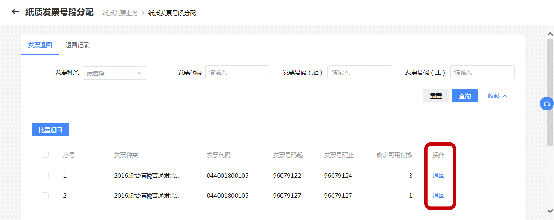 领票员在“发票分配”页签,勾选需要分配的号段,点击“分配”(支持批量分配)。