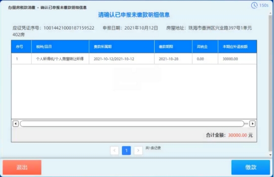 纳税人选择业务功能,身份认证通过后,选择房源信息,确认未缴费税费明细信息无误后进行存量房税款清缴。