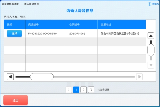 3. 进入“房源信息”选择界面,纳税人选择房源信息,点击【选择】按钮,如下图所示: