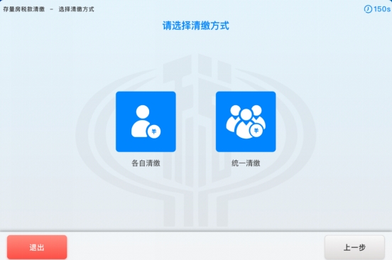 4. 进入“缴款方式”选择界面,纳税人根据实际情况选择各自清缴或统一清缴,如下图所示: