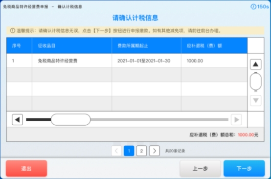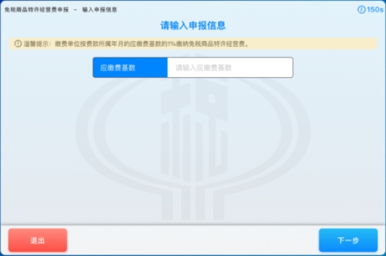 1. 纳税人在自助终端机系统主界面,选择“免税商品特许经营费申报”功能。