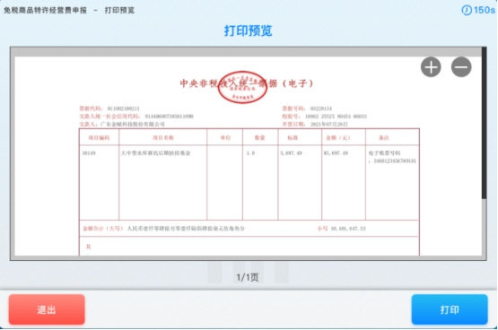 9. 缴款成功后,系统进入“完税证明预览”打印界面,纳税人确认完税证明信息,点击【打印】按钮,如下图所示: