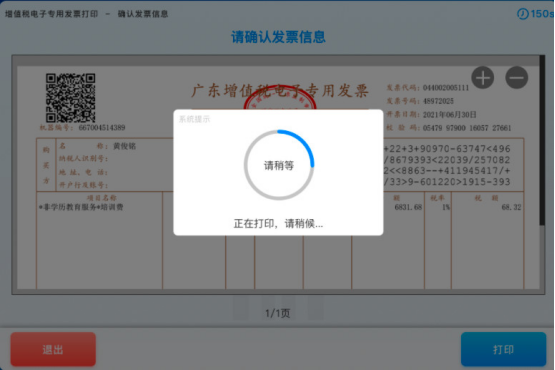 纳税人选择业务功能,输入发票代码、号码等发票信息后,可以打印增值税电子专用发票。