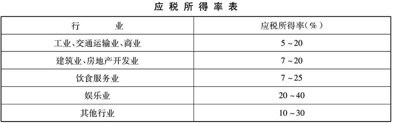 应税所得率应按下表规定的标准执行: