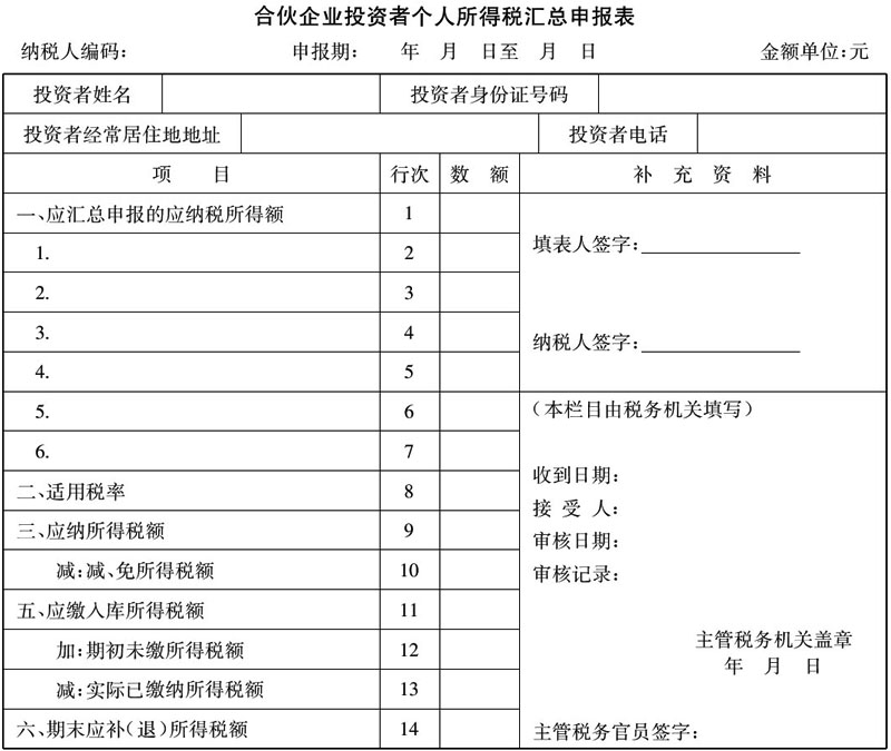 《合伙企业投资者个人所得税汇总申报表》填报说明
