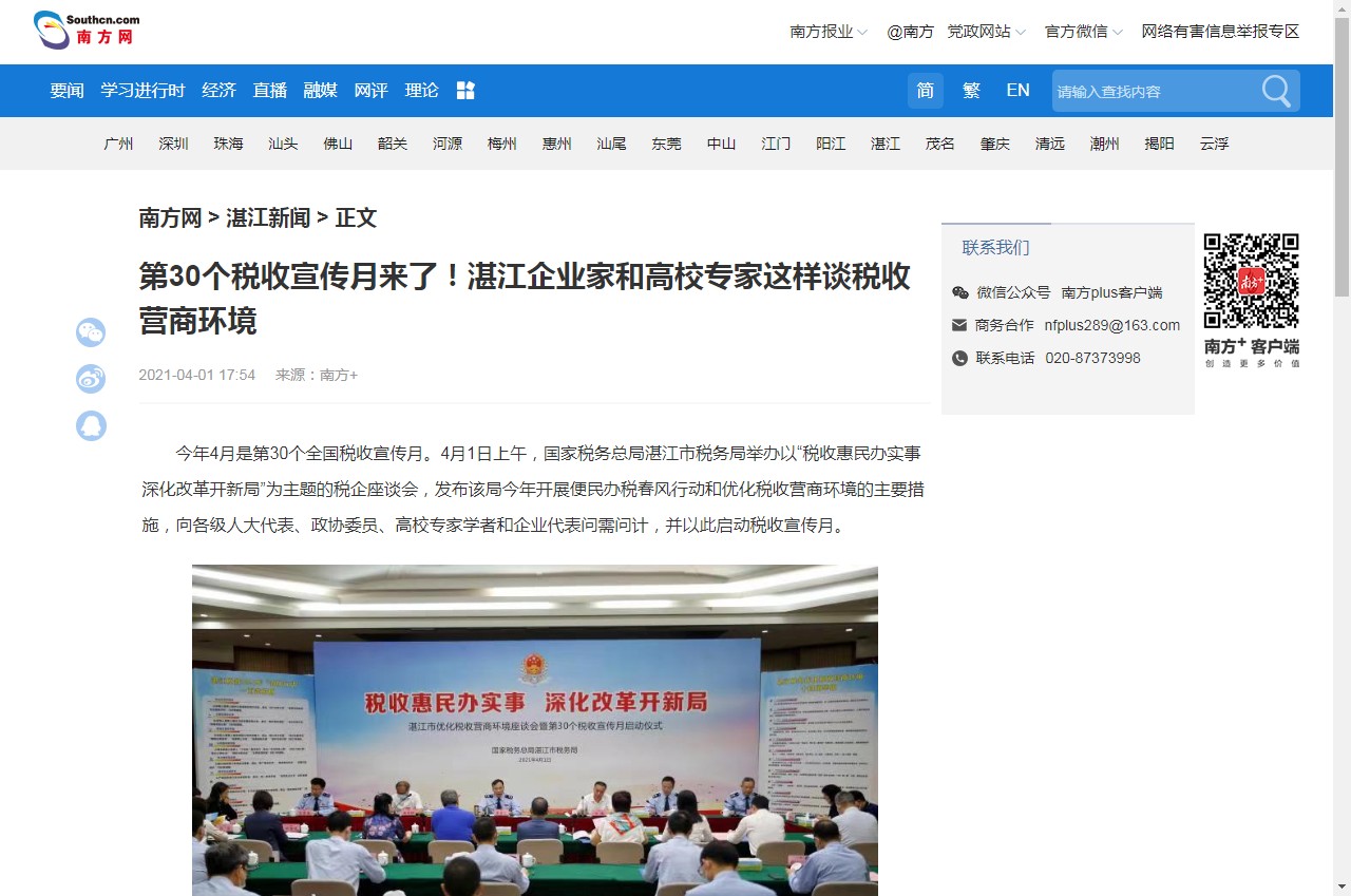 4月1日上午,国家税务总局湛江市税务局举办税企座谈会,发布今年便民办税春风行动和优化税收营商环境的主要措施,向各级人大代表、政协委员、高校专家学者和企业代表问需问计。