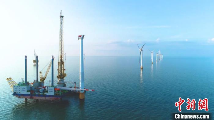 图为徐闻外罗港二期海上风电场安装海上风机 岳瑞轩 摄