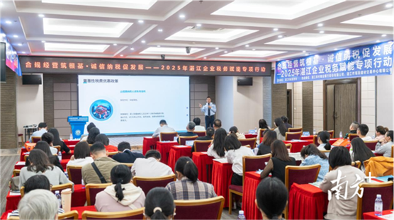 为进一步加强纳税信用体系建设,推进税费政策精准落地,日前,湛江市税务局受邀参加由湛江市诚信协会主办的“合规经营筑根基·诚信纳税促发展——2025年湛江企业税务赋能专项活动”,为协会会员单位作专题宣传辅导,50余名企业代表参加了此次活动。
