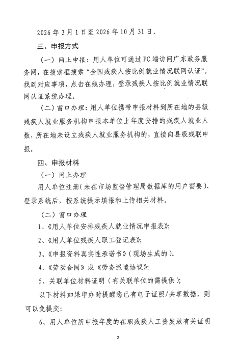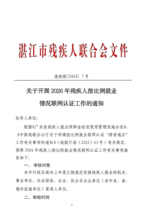 关于开展2026年残疾人按比例就业情况联网认证工作的通知