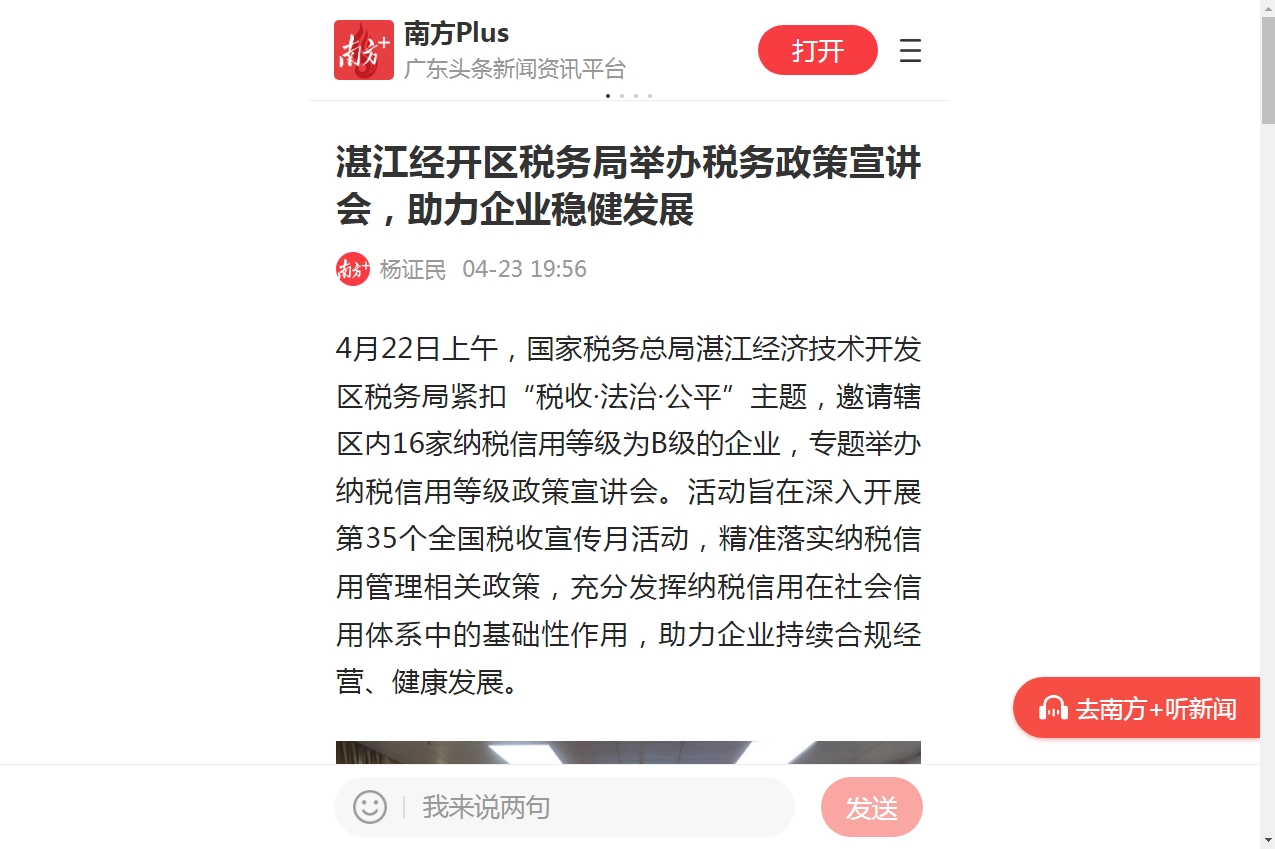此次宣讲会是湛江经开区税务局开展税收宣传月系列活动的重要举措之一,不仅进一步拉近了税企沟通距离,更有效提升了企业纳税信用管理意识。参会企业纷纷表示,将以此次宣讲为契机,规范自身涉税操作,主动守护纳税信用,依托良好信用实现企业稳健发展。