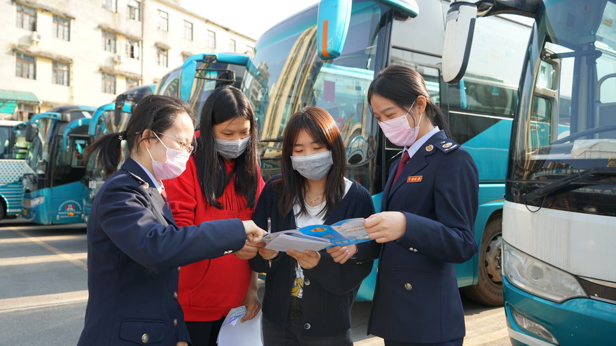 企业复工复产护航队向怀集汽车站宣传疫情期间提供公共交通运输服务取得的收入免征增值税等税收优惠政策