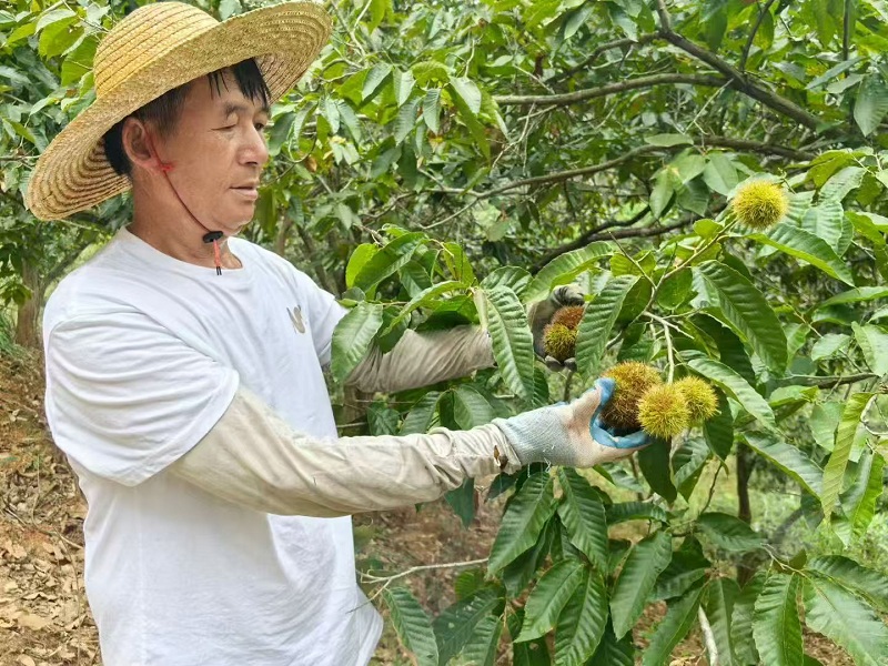 “今年油栗长势特别好,丰产期面积达到50亩,预计总产量能有4万斤,比前年增长了近三成。”长岗镇宝栗水果基地负责人陈东銮笑着算起了“丰收账”。如今的他,不仅是当地的种植大户,更是油栗产业多元发展的“探路人”——在税惠政策的底气支撑下,他不仅与清远、韶关等地企业深化合作,将联合种植面积扩至2000亩,还大胆探索油栗预制菜开发,计划投建大型冷库让新鲜油栗能“跨季销售”,让销售渠道越拓越宽。