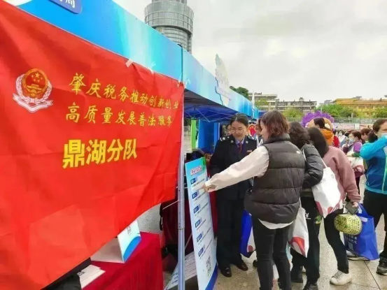 在浓厚“比学赶超”氛围中,普法宣传锐意“破圈”——联合肇庆市普法部门创新开展“税宣+普法”游园会活动,吸引超1万人实地体验;建成“数说肇税”智慧集成平台,创新打造第一个全国智播普法可视答疑样板,整合12366热线提供智能应答普法服务,并以全省第一个社保费网格三方实时调度指挥中心,为全市400多万缴费人提供便捷的缴费普法服务。在志愿服务中,持续开展“我是党员我带头”活动,组建“党员先锋队”“巾帼建功队”“税务青年助企团”30余支,结对共建开展宣传活动超60场,“西江党旗红”党员志愿服务队助力乡村振兴、文明创建等任务,获评肇庆市最佳志愿服务组织。