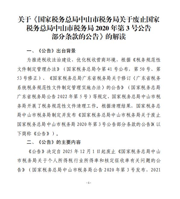 关于《国家税务总局中山市税务局关于废止国家税务总局中山市税务局2020年第3号公告部分条款的公告》的解读