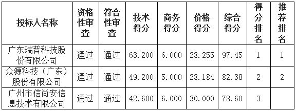 综合评分法中标(成交)候选供应商排序表