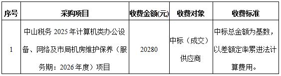 二、项目名称:中山税务2025年计算机类办公设备、网络及市局机房维护保养(服务期:2026年度)项目