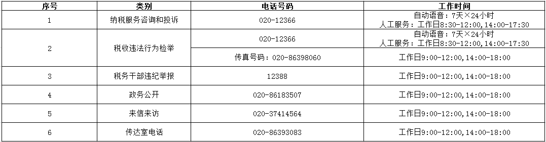 国家税务总局广东省税务局对外公开电话(纳税人端开票系统支持电话)