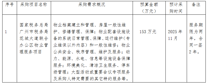为便于供应商及时了解政府采购信息,根据《财政部关于开展政府采购意向公开工作的通知》(财库〔2020〕10号)等有关规定,现将2025年9月至2025年12月采购意向公开如下: