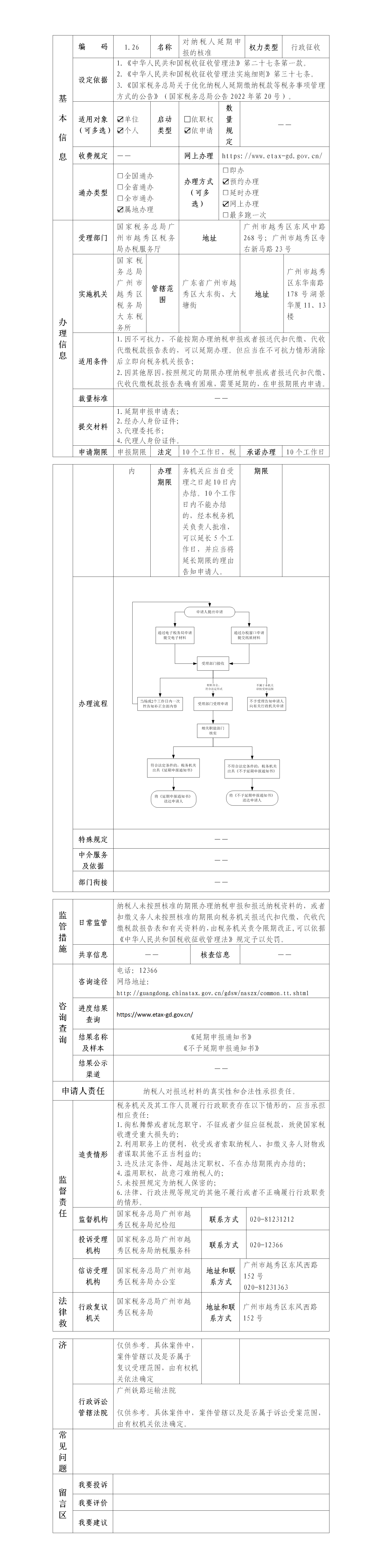 权责事项信息表(1.26对纳税人延期申报的核准)