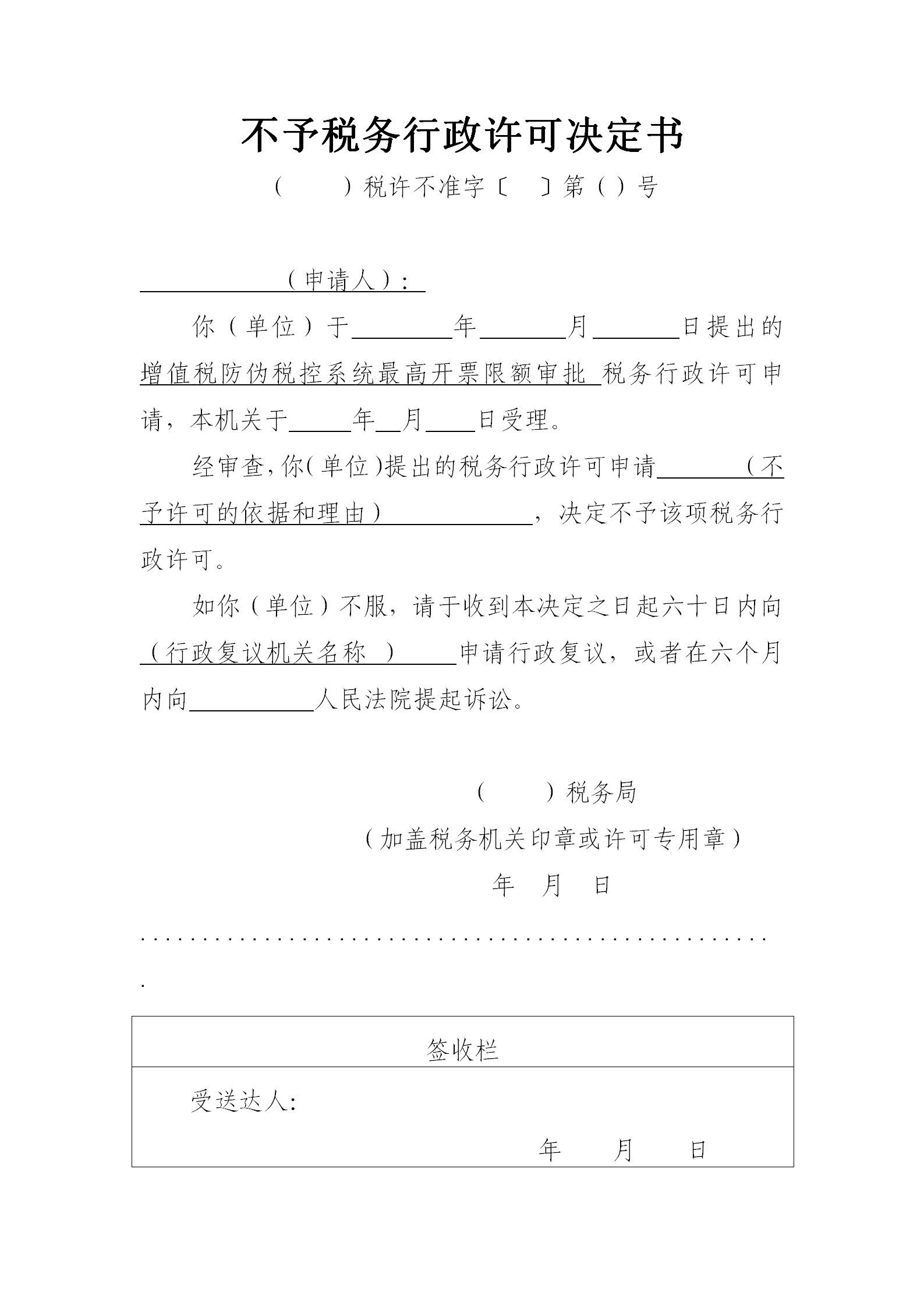 不予税务行政许可决定书