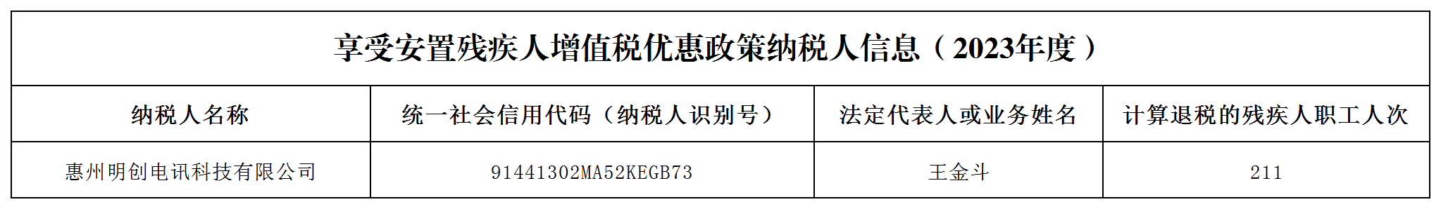 享受安置残疾人增值税优惠政策纳税人信息(2023年度)