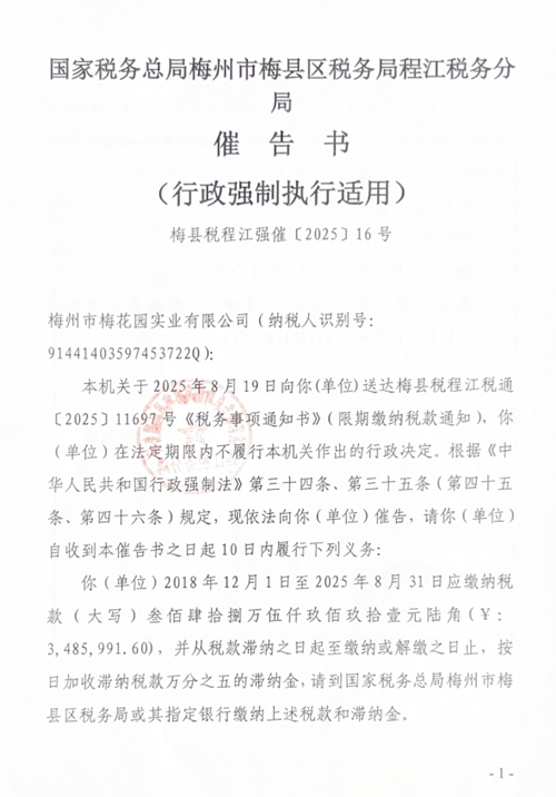 国家税务总局梅州市梅县区局税务分局催告书(行政强制执行适用)