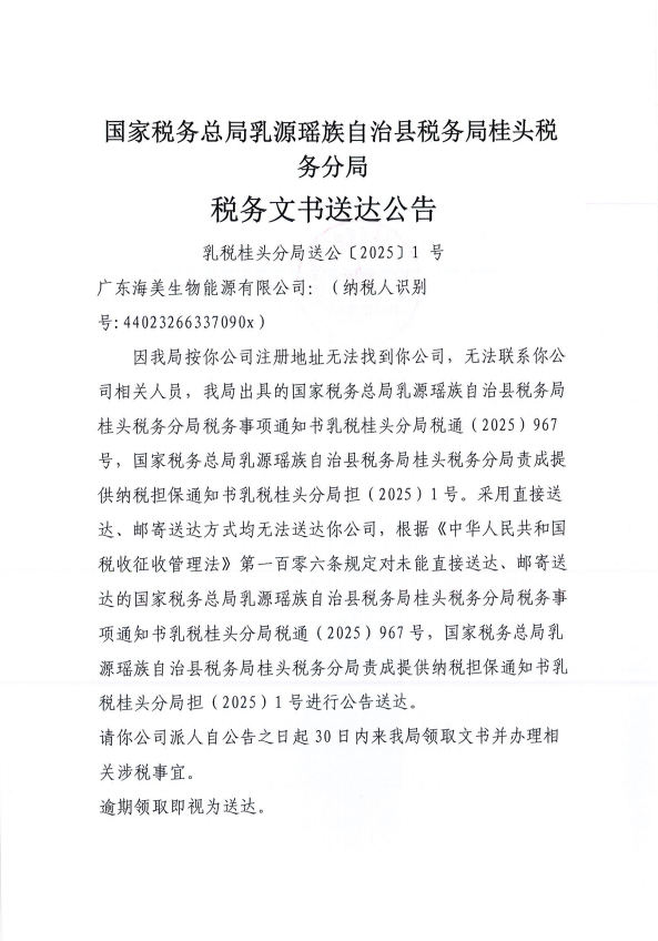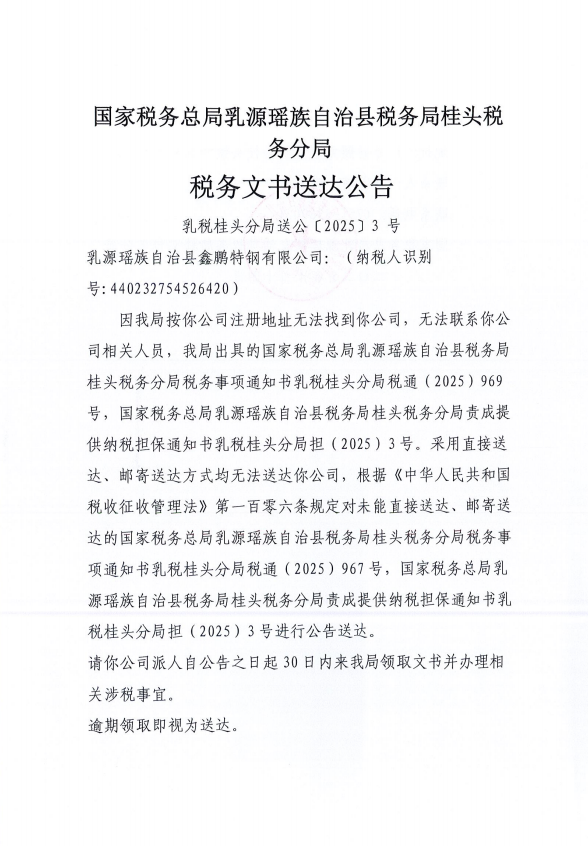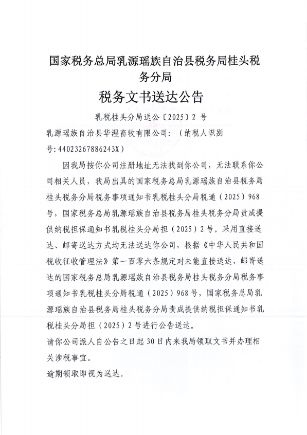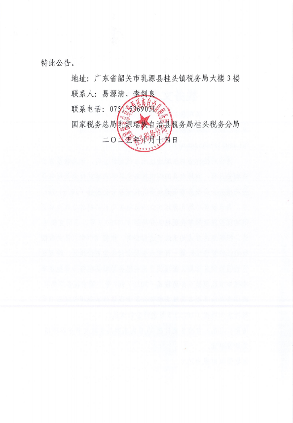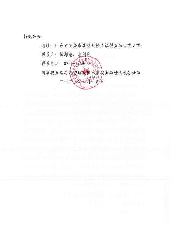 国家税务总局乳源瑶族自治县税务局桂头税务分局税务文书送达公告(十月)