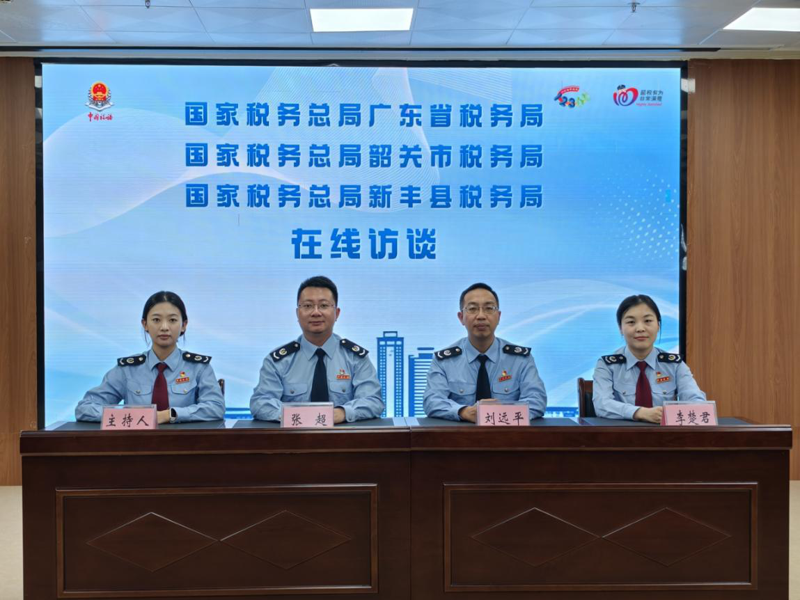 嘉宾:国家税务总局新丰县税务局党委书记、局长张超;国家税务总局新丰县税务局党委委员、副局长刘远平;国家税务总局新丰县税务局税政股股长李楚君;